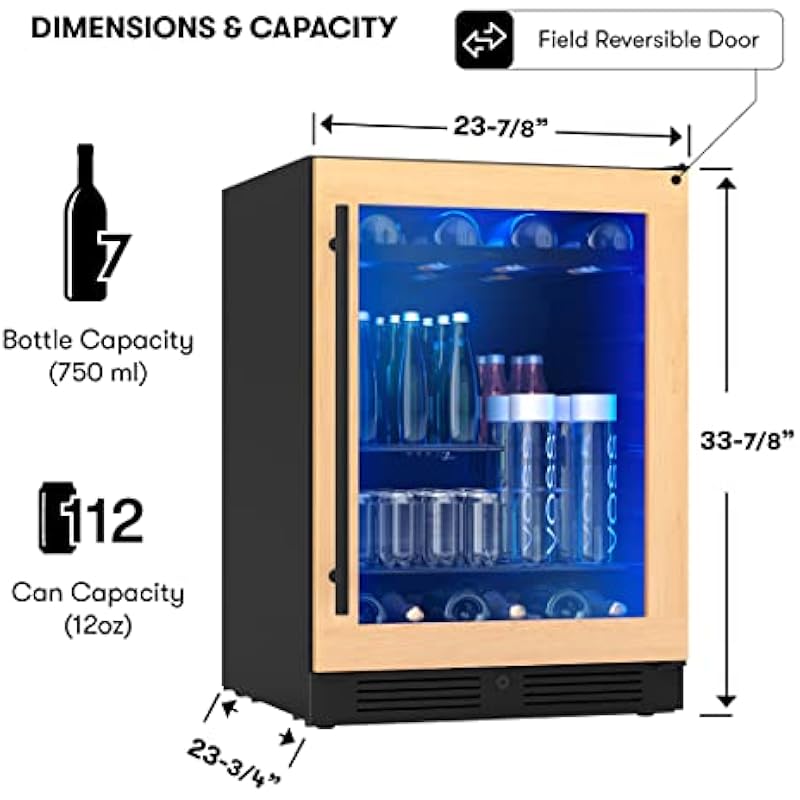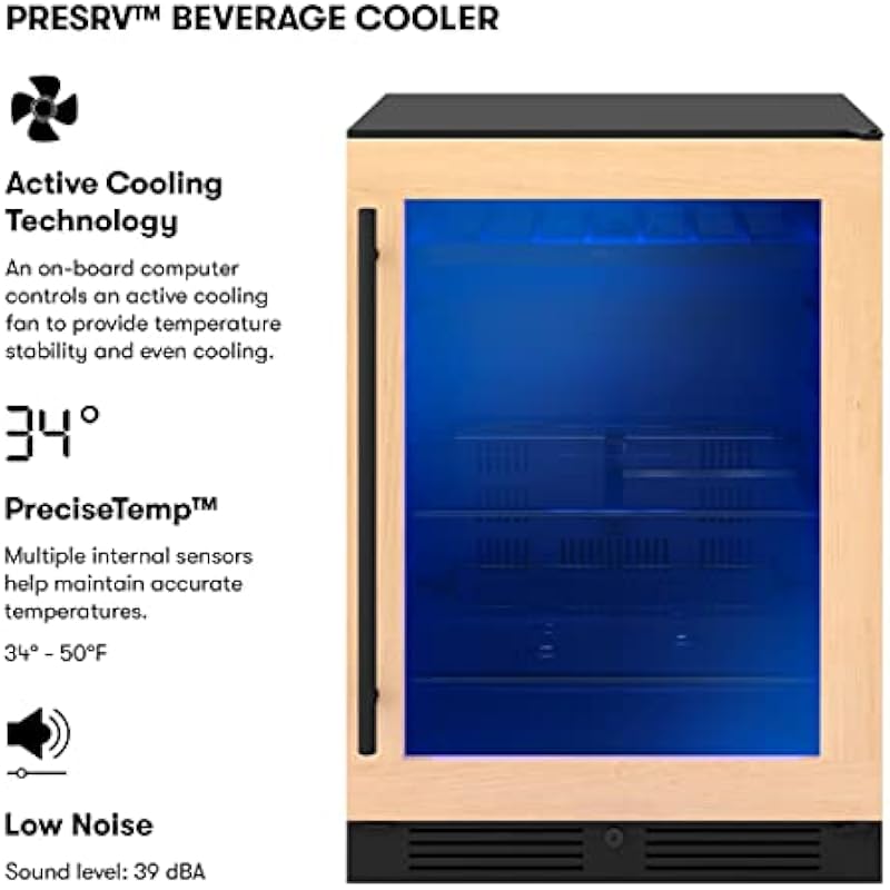 Zephyr Presrv 24 Inch Panel Ready Single Zone Beverage and Wine Fridge 7 bottles, 108x12oz cans Under Counter, Built In Cooler (handle sold separately, wood panels not included)